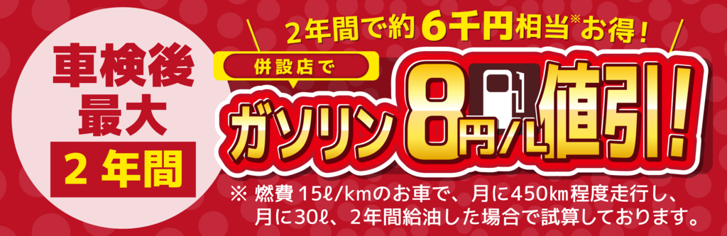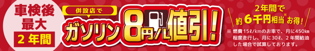系列店でご利用いただけるガソリン割引券を進呈中!