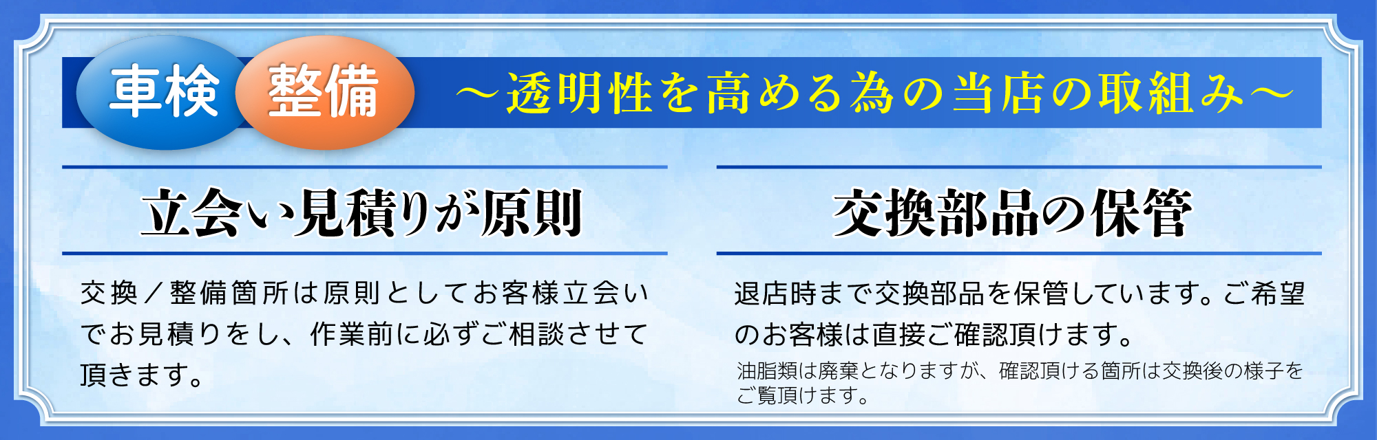 当店では上記のすべて、ホームページに記載してある車検基本料に含まれていますので、ご安心ください。